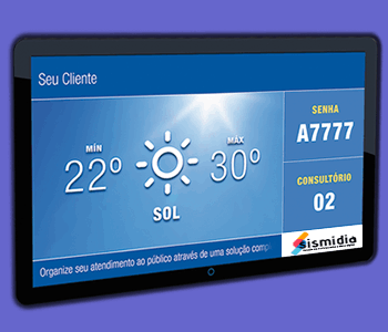 Sistema para atendimento de público. No mesmo ambiente, você também pode divulgar vídeos informativos e propagandas para seus visitantes.